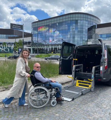 Każdy transport realizowany jest przez doświadczonych kierowców wyszkolonych w zakresie obsługi osób z niepełnosprawnościami. Zapewniamy: